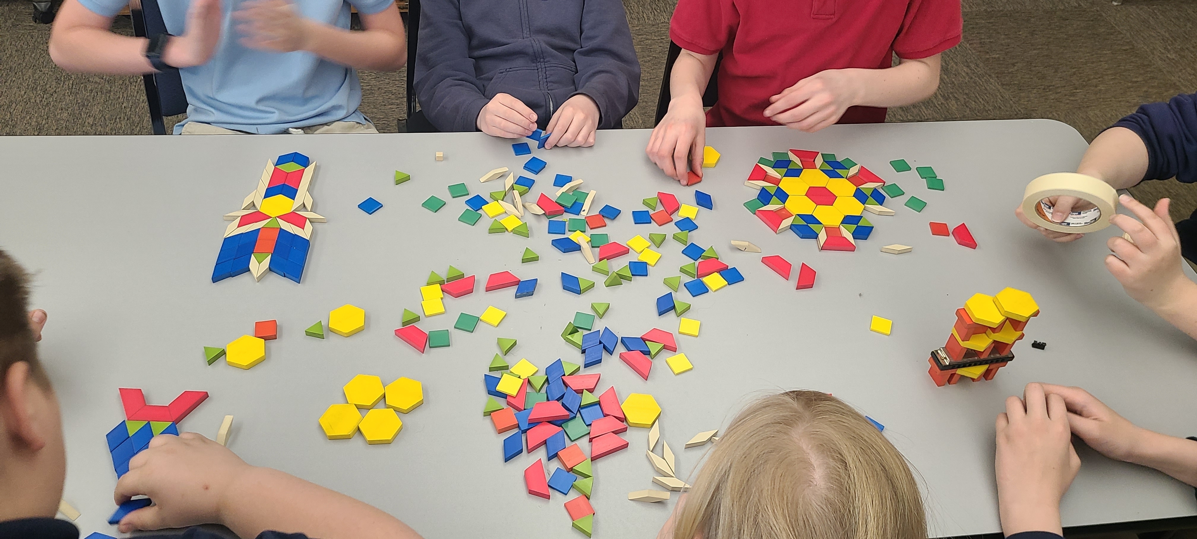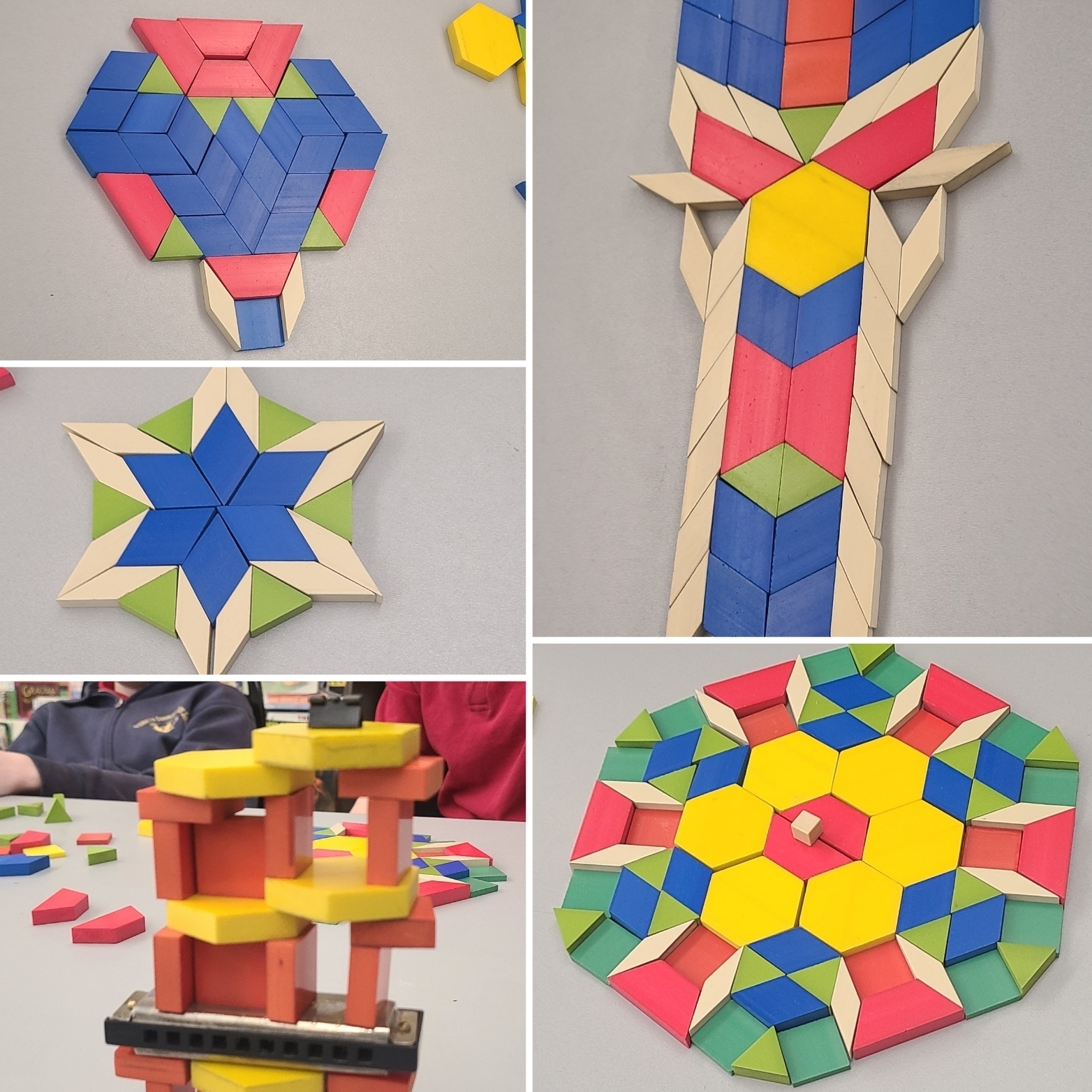 This month's design principal is "The Having of Wonderful Ideas." We made this "story" from pictures. It goes as such: The teacher shows some building blocks for us to try and make something. After some time, all of us were able to create a unique pattern from the blocks. From just some simple blocks, we made an interesting and cool pattern.